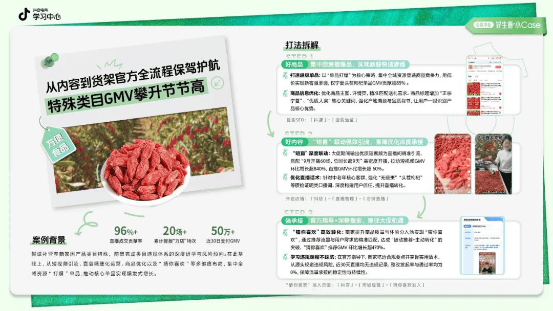 在这样的机遇与挑战并存的环境下,@宁夏中宁杞扬红枸杞精选 却凭借抖音电商“全程陪跑”支持,再加上自身“勤奋开播”的运营策略,成为滋补品类中的“优等生”。