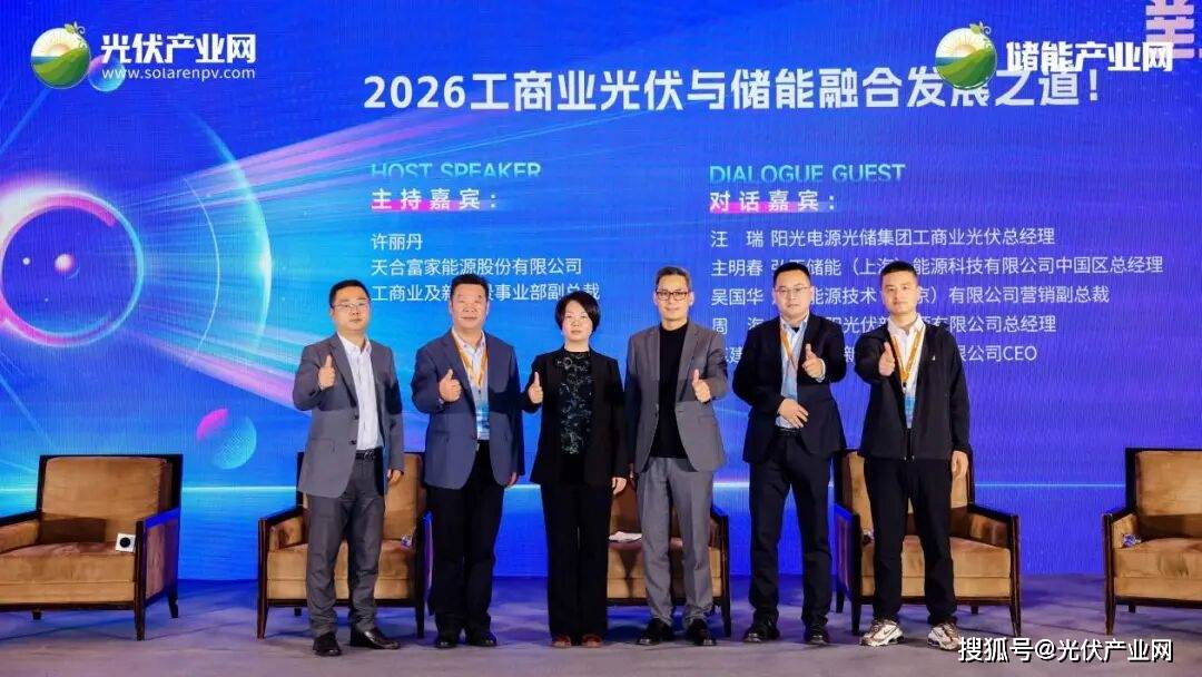 阳光电源光储集团工商业光伏总经理汪瑞、弘正储能(上海)能源科技有限公司中国区总经理主明春、汉伏能源技术(南京)有限公司营销副总裁吴国华、安徽烈阳光伏新能源有限公司总经理周海、上海莱拓新能源科技有限公司CEO范建伟,围绕“2026工商业光伏与储能融合发展之道!”展开深度交流分享,这场思想的碰撞不仅激荡出耀眼的火花,更照亮了未来商业化落地的可行路径。